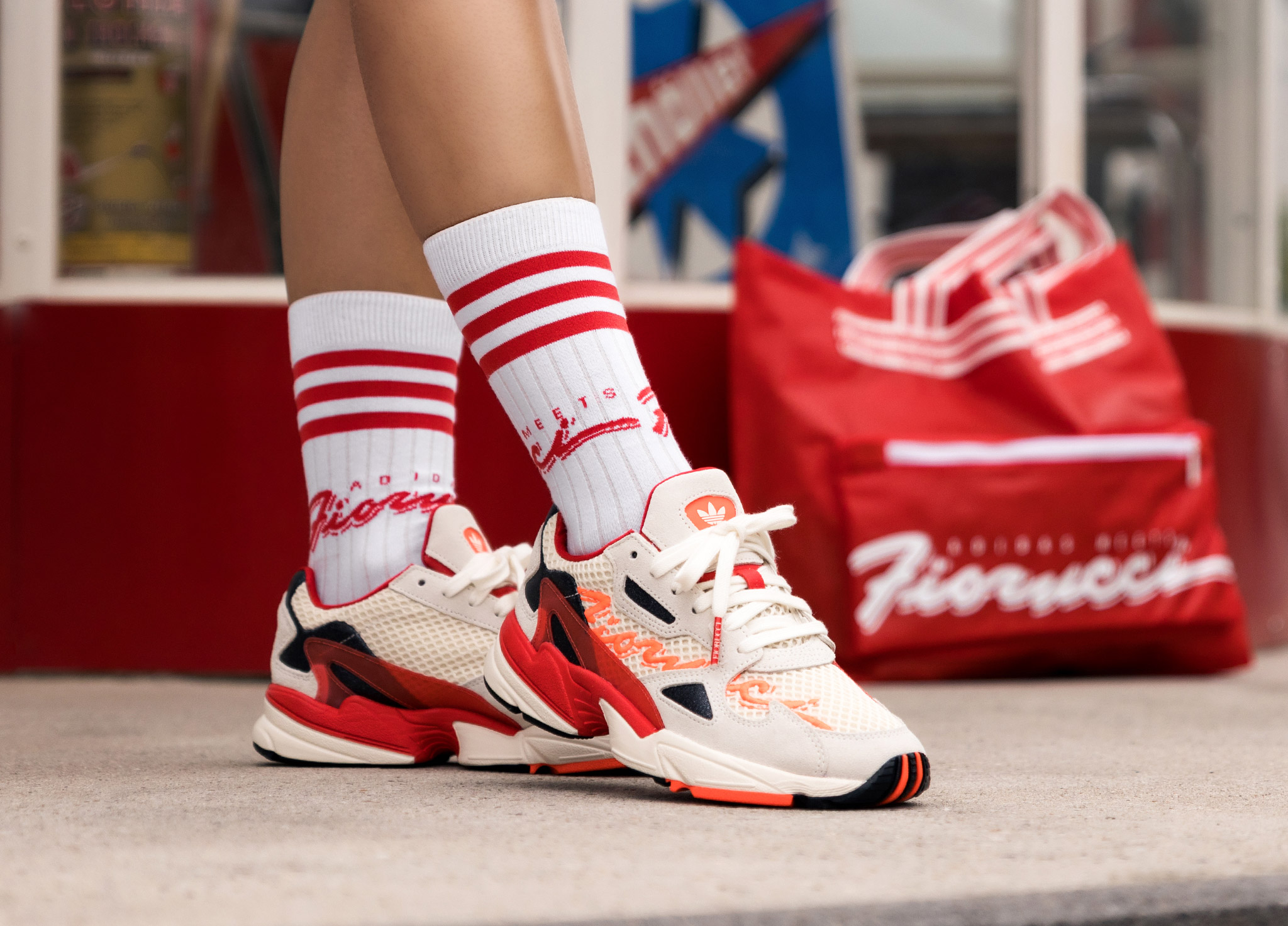Die aus Mailand stammende Brand ist bekannt für ihre knalligen Retro-Designs, die ganz im Zeichen der damaligen Diskokultur stehen. Mit Fiorucci hat sich adidas einen Partner geangelt, der es wie kein anderer schafft, cool und sexy gleichermaßen zu vereinen. Die poppige Ästhetik mit klassischen adidas Originals-Elementen, versprüht gute Laune und sorgt für den perfekten Vacay-Look. Die Antwort auf „Ich packe meinen Koffer und nehme…“ dürfte somit leicht zu beantworten sein: Egal, ob Shorts im 80s-Style oder der adidas Falcon im Fiorucci-Makeover – die Limited Edition-Collabo ist eindeutig ein Must-Have für alle Sonnenanbeterinnen.