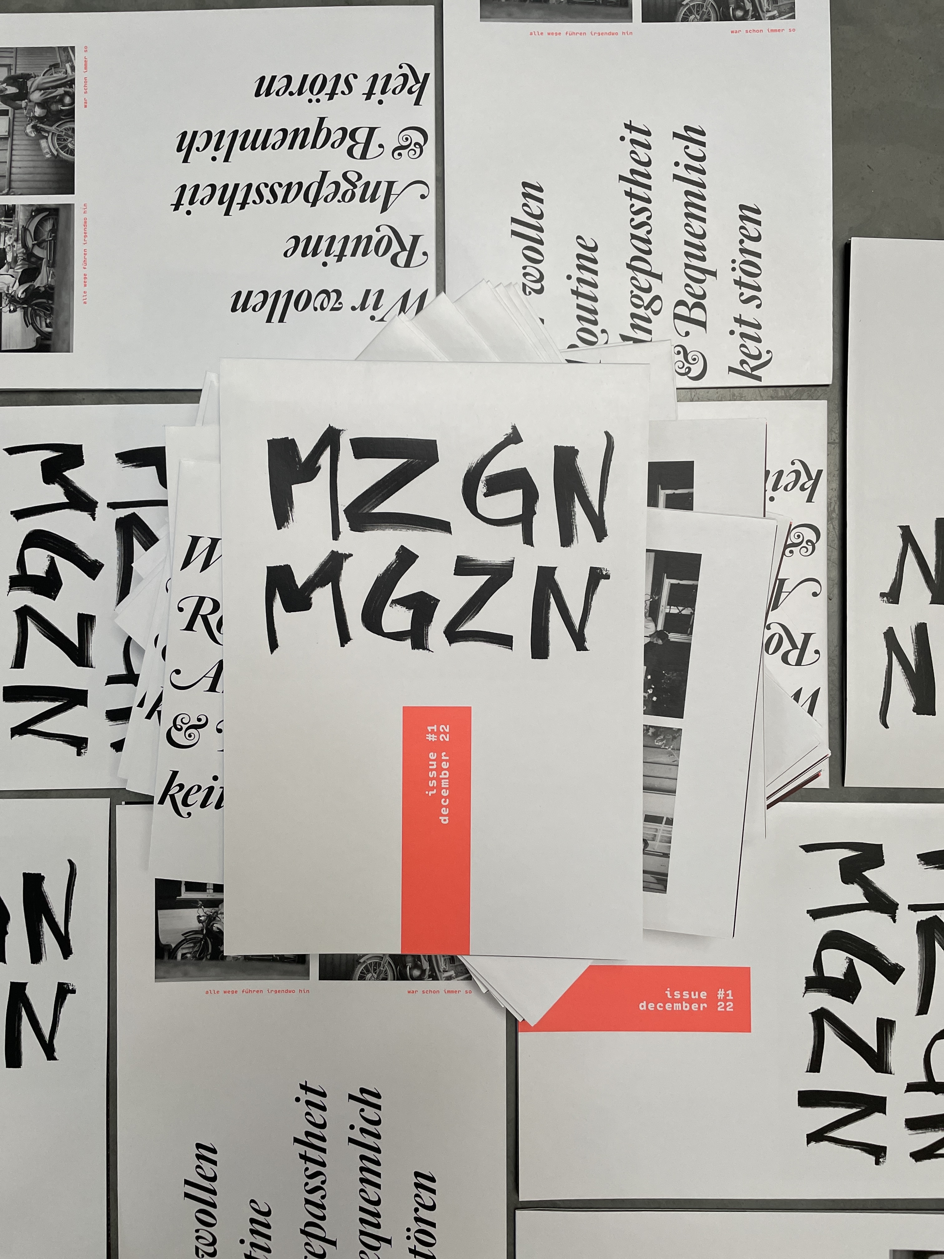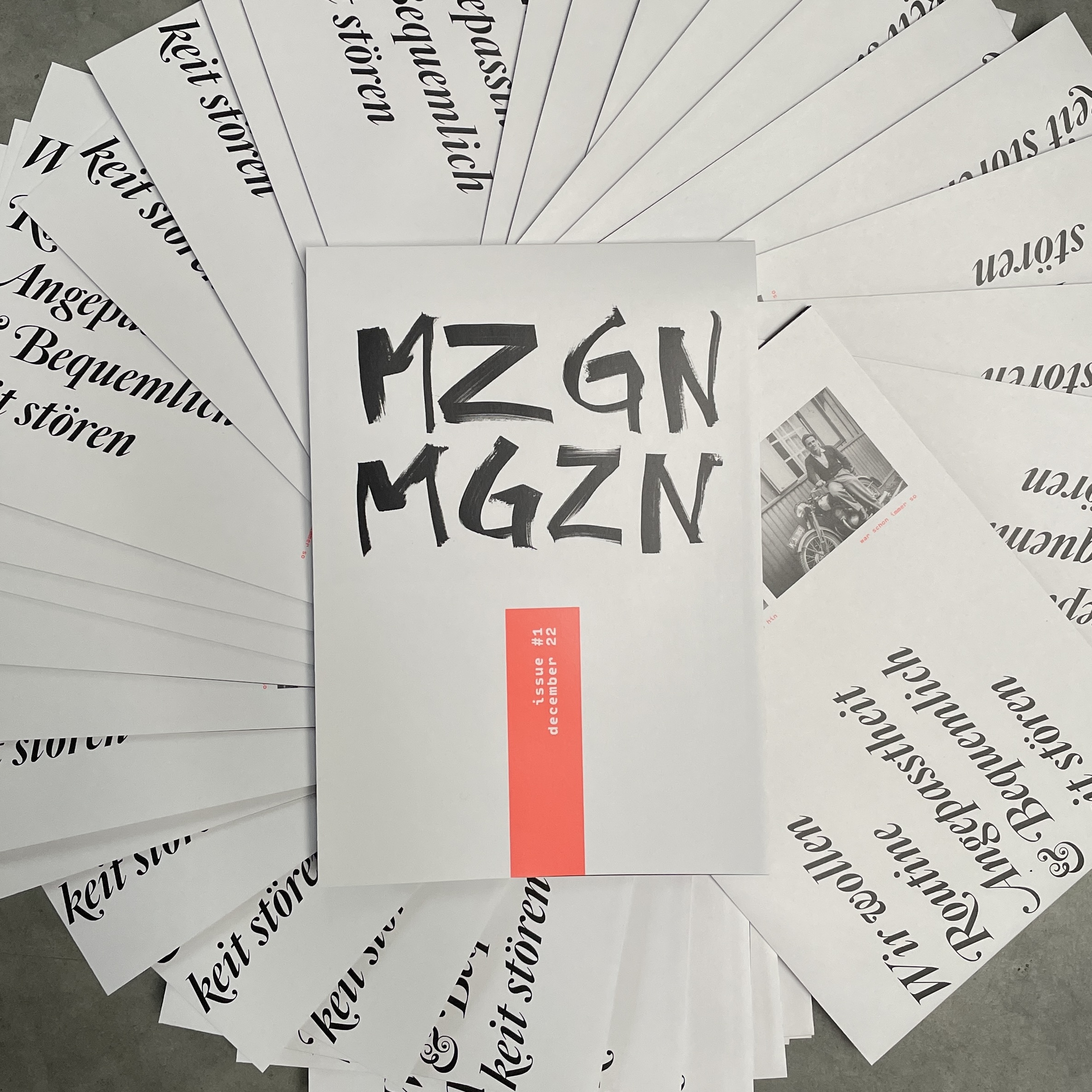 Nach hunderten Ideen, Konzepten und ganz viel Brainstorming haben wir es geschafft, unsere oftmals wirren Gedanken auf einem Tablett zu servieren. Zeitlos, wortgewandt und authentisch, ohne dabei den Boden der Tatsachen zu verlassen. Mit dem MZGN MGZN wollen wir Routine, Angepasstheit und Bequemlichkeit stören und am Ende mehr Ausrufezeichen als Fragezeichen sein. Der Grund dafür ist ganz simpel: Wir wollen ins kalte Wasser springen, zerdenken statt loslassen und uns festbeißen anstatt die Reißleine zu ziehen. Uns geht es hiermit – anders als im wirklichen Leben – nicht um Sinn, sondern um die Lust am Gestalten, die Lust am Machen. Vielleicht sind wir hier ein wenig Momo unter den grauen Männern, vielleicht sind wir auch nur gaga. Unser Credo lautet daher: Nimm dich selbst wichtig, aber nicht immer so ernst.